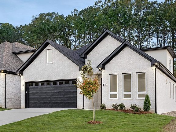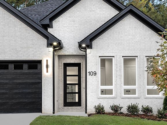 Welcome to 109 Kinley Loop, a stunning home where modern style & comfort come together beautifully. With its sleek black front & garage doors, designer finishes, and an open, light-filled layout, this home stands out from the rest. Step inside to a spacious entryway with a statement light fixture & light wood floors that flow throughout the main living spaces. The open floor plan connects a stylish kitchen, dining area, & living room anchored by a fireplace & huge windows that flood the home with natural light. Oversized glass sliding doors lead to outdoor living space & offer a seamless connection to the peaceful surroundings. The kitchen is both beautiful & functional, featuring a gas stove, modern cabinetry, & plenty of room to gather and entertain. The primary suite is a true retreat with gorgeous views, a spa-like bathroom boasting large windows, a soaker tub, & a glass-enclosed shower. With the primary bedroom & two additional bedrooms on the main level, & a fourth bedroom with a full bath upstairs, the layout offers flexibility for guests or a home office. Every detail in this home is designed for elevated living—modern lines, warm materials, & bright, open spaces.