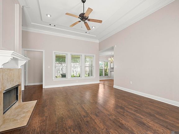 La Maison Belle is a one street restricted subdivision in the heart of Denham Springs. This home offers a courtyard entrance with a wrought iron gate creating a feeling of formal elegance and enhanced with fresh gardens. You enter into a southern charm home with soaring 12’ ceilings, graced with crown molding and enhanced with wood laminate flooring, a center fireplace as well as an abundance of windows for natural light . This home is partially open to the dining and kitchen areas giving just enough privacy to the kitchen yet allowing open space for entertaining family and friends. The kitchen offers solid surface granite countertops and stainless appliances. The pantry was upgraded with shelving to allow for storage of large items. The split floor plan gives privacy to the primary suite located in the back of the home. The primary bath has been renovated with a wider doorway and offers a large spa shower, a relaxing retreat. An additional linen closet was added as well. The fully fenced backyard sanctuary offers a covered back porch extended with an open deck – a quaint resting space. *Structure square footage nor lot dimensions warranted by Realtor.