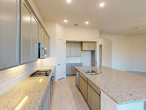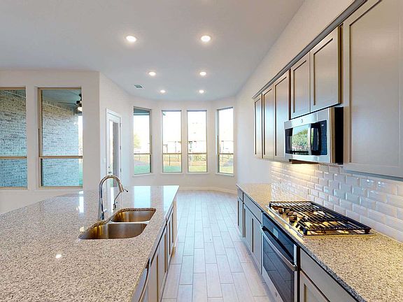 Greenbelt and park view lot with handsome curb appeal. Open floor plan with large family kitchen area. Silestone kitchen tops with stainless steel appliances and 42" upper cabinets. 3 full baths. Elegant bay window in Master Suite. Separate tub and shower in master bath plus large master closet. Extended patio option makes outdoor living a breeze!