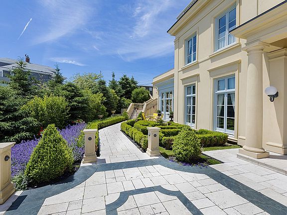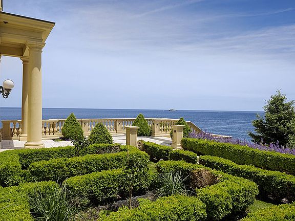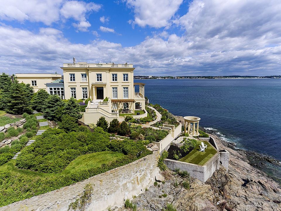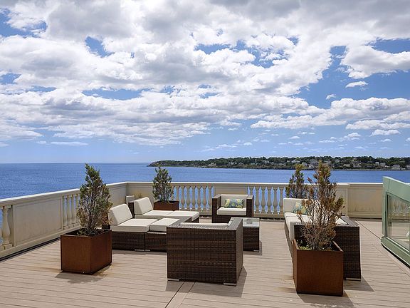 A modern replica of a French XVIIIth century villa, the house of "Bien-assise" holds a fabulous position on the end of a peninsula of Nahant offering 270 degrees of beautiful panoramas over the Atlantic, Nahant and the North shore. The elevation of the home alongside the ocean captures the most of the sparkling sea and lush cliff side views. With four bedrooms and 3 full and two half-baths the residence offers a wonderful flow with high ceilings, floor-to-ceiling glass windows, and French doors that frame the sea. The sumptuous master bedroom has water views on three sides, a gas fireplace, master bath with steam shower, and custom-built walk-in closet. A separate space for guests, in-laws, or au pair is located on the ground level and faces the ocean. A fabulous roof deck with outdoor grill, lounging areas, and 8-person Jacuzzi has 360-degree uninterrupted views of the Atlantic. The many covered terraces and patios provide the perfect retreat from the sun. The garden both matches the classic style of the house as well as providing intimate sheltered spaces to enjoy the views and the sound of the waves. The grounds encompass four levels with a classical staircase, retaining wall, pergolas, landings, fountains, and a tea house at the water's edge. Enjoy swimming, fishing for blues and stripers, paddle boarding, wind surfing nearby. A lifestyle you can truly enjoy only 13 miles from Boston.