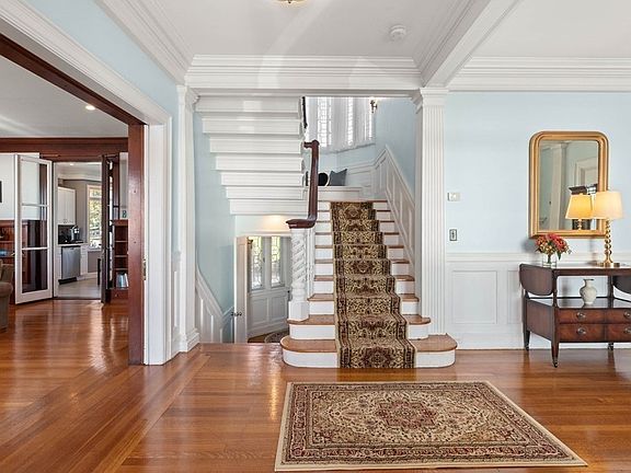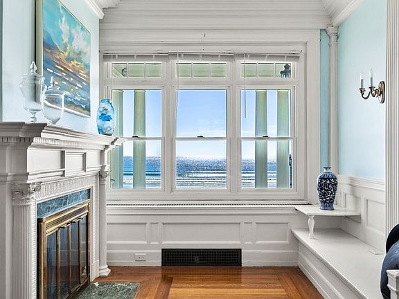 Diamond District Estate offering endless views of the Atlantic Coast. Enter thru a grand porch w/Doric columns & granite steps situated on a spectacular corner lot. Inside admire the exquisite vestibule & a stunning staircase that takes center stage w/carved balusters showcasing the master craftmanship at every turn along w/tall leaded glass windows & quarter sawn oak flrs. The liv. rm features mahogany wainscoting, pocket dr, marble frplce & built-ins while the oceanside dining rm offers stunning vistas of the sea. A new kitchen w/a beautiful curved wall of windows & ss applns. A parlor w/frplc & built in "gossip" telephone bench. Follow upstairs to 2 firplced oceanside bdrms, elegant baths & a sitting area w/a large seaside deck. Three more bedrms w/views on the 3rd level. The beautiful 3/4 bedrm aprtmnt w/sep entrance has a nw kitchn, frplc, butlers pntry & a luxurious lvng/dine rm w/frplc & waterviews. Lrg basemnt w/wine cellar, 6 car+ prk, 2 car garage & private grounds.