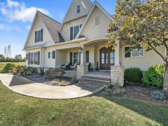 Welcome to a stunning Jimmy Nash-built home set on a full acre in one of Central Kentucky's most picturesque neighborhoods. Rolling hills, sweeping horse farm views, and breathtaking sunsets create a storybook backdrop, while the community itself offers a stocked fishing pond, elegant consistency, and unmatched craftsmanship. Just 7 miles from Southland Christian Church and minutes from Keene and Champions Golf Courses, this location offers the perfect blend of convenience and country charm. Inside, the two-story entry opens to hardwood floors and an inviting layout designed for both everyday living and elegant entertaining. The vaulted hearth room with fireplace, airy breakfast area, and white kitchen with quartz countertops, propane gas cooktop, and bar seating provide a warm heart to the home. A spacious dining room, two-story family room with fireplace and cathedral ceiling with painted wood beams, powder room, and first-level laundry make daily life effortless. The first-floor primary suite offers true comfort with an ensuite bath for privacy and ease. Upstairs, three generously sized bedrooms each feature walk-in closets and share a large bathroom with dual vanities. A central vac, "Vacuflo" system adds to the home's thoughtful conveniences. The finished lower level is designed for fun and flexibility, offering a large entertainment area, a full bath, and plumbing for a minibar with ice maker, sink, and fridge. Custom built-in twin beds create cozy guest space, perfect for kids, grandkids, or quiet reading nooks. Three additional unfinished rooms provide abundant storage or room to expand. Outdoors, enjoy a covered front porch, side-entry garage, and a back patio ideal for evenings around the fire pit or shooting hoops at the basketball goal. Whether you're entertaining, stargazing under the clear Kentucky sky, or simply enjoying peaceful evenings at home, this property delivers the lifestyle you've been dreaming of. Although the address is Versailles, but this home is listed in the Jessamine County PVA and students go to school in Jessamine Count- Wilmore Elementary, and West Middle and High Schools.