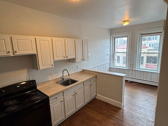 Front main street viewOn street parkingEat in kitchenModern bathroomHardwood floorsLarge one bedroomPlenty of natural light