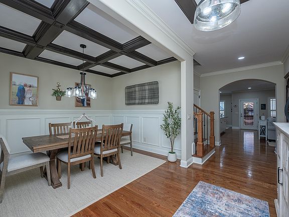 Welcoming front porchBeautiful coffered ceilingStunning foyerSpacious primary suiteElegant dining roomImpressive walk-in closet