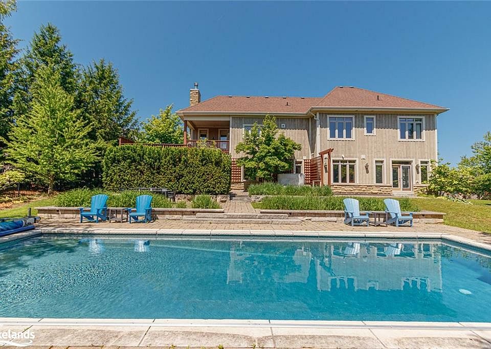 This stunning 5-bedroom, 4-bathroom chalet in The Orchard at Craigleith offers the perfect escape, all year round. Wake up to breathtaking mountain views and minutes to Craigleith Ski Club. Blue Mountain Village, Northwinds Beach, Golf, and Tennis are minutes for endless four seasons adventures. Come summer, the chalet transforms into a haven for outdoor enthusiasts. Take a refreshing dip in the inviting in-ground salt water pool, perfect for cooling off after a day exploring Georgian Bay and the nearby Georgian Trail. Soak in the hot tub after a long hike. The fully fenced yard provides a safe space for children and pets to play, along with the pool's safety cover while professionally landscaped gardens and patios create a peaceful ambiance. Inside, discover a luxurious mountain retreat. The chef's kitchen, with its expansive granite island, is perfect for whipping up delicious meals after a day of adventure. It flows seamlessly into a cozy Great Room with a wood-burning fireplace, ideal for relaxing evenings. The adjacent dining area comfortably seats 12, creating a warm space for family gatherings. Downstairs, a dedicated Rec Room keeps the kids entertained, while a spacious Mud Room ensures your gear stays organized, no matter the season. For even more summer fun, consider joining the Craigleith Summer Club, which offers 4 clay tennis courts, and a pool adding the finishing touches to this irresistible four-season destination. Embrace the ultimate mountain lifestyle in this exceptional chalet. Maintenance fee- $194/month