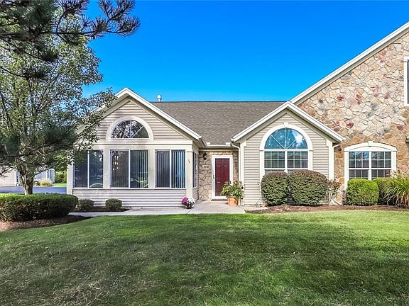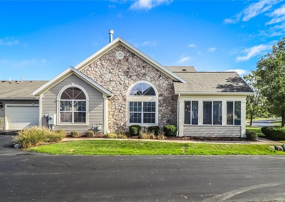 YES! This beautiful townhouse in Hilton will check every item on your wishlist, starting with the gorgeous entryway that welcomes you into the spacious home. The open-floor plan, vaulted ceilings, recessed lighting and ample windows make the entire home feel vast and bright! You'll love gathering with friends and family around the gas fireplace in your fabulous living room, preparing meals in the kitchen of your dreams with its new cabinetry, a beautiful built-in wine rack, and stainless steel appliances. With 1,846 Sq. Ft., 2 beautiful bedrooms, 2 full bathrooms, and a delightful sun room, you'll have all the space you need to settle in and feel right at home! Newer amenities include a new floor in the attached garage with its L shaped counter, a new hot water heater, furnace, and an air conditioner