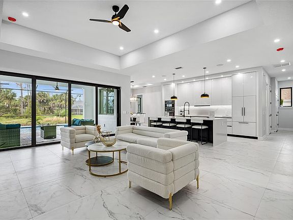 This extraordinary waterfront home is truly one of a kind, offering more upgrades and custom features than any other property in the area! Nestled along a tranquil canal, this luxury new construction masterpiece combines elegance, technology, and thoughtful design. Inside, the spacious layout is enhanced by a smart floor plan that allows versatility, such as easily converting the office into an additional bedroom if needed. High-end finishes and premium appliances from Miele, Bosch, and Fisher & Paykel make the kitchen a true culinary haven. For added comfort and charm, two beautiful electric fireplaces provide both warmth and ambiance. Step outside to discover a massive lanai that feels like an extension of the home itself, perfect for year-round living and entertaining. The outdoor kitchen, grill, and oven make al fresco dining effortless, while the heated saltwater pool completes this resort-style oasis. Technology is seamlessly integrated throughout, with security cameras and a Sonos sound system inside and out for ease of use and immersive enjoyment. And when it’s time to venture out, you’ll find several beautiful beaches just a short drive away, giving you endless options to enjoy Florida’s Gulf Coast lifestyle. This residence showcases impeccable craftsmanship, luxury finishes, and cutting-edge technology- an ideal combination for both relaxation and entertaining. Don’t miss the chance to call this extraordinary waterfront retreat your home. Schedule your private showing today!