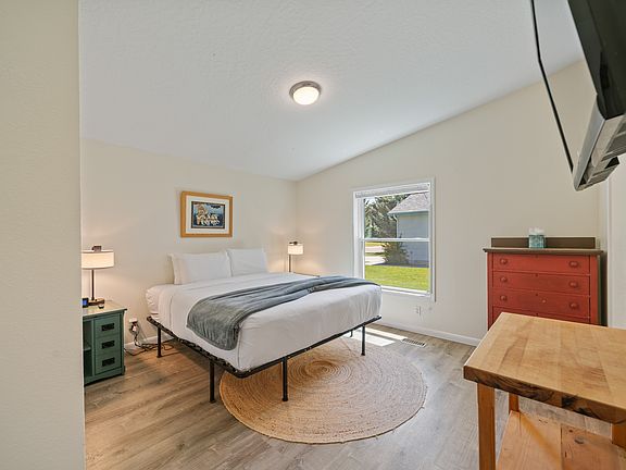 Welcome to your peaceful home base in beautiful Bozeman, Montana! This cozy single-level, single-family home offers comfort, simplicity, and space for up to three guests. With a king bed in the main bedroom, a twin bed in the second, and a welcoming office and living area, it's the perfect spot for couples, solo travelers, or small families. Enjoy quiet mornings on the shaded outdoor seating area or explore the mountain charm of Bozeman just minutes away. This thoughtfully arranged home includes: 2 Bedrooms: 1 King Bed (main bedroom) 1 Twin Bed (second bedroom) 1 Ensuite full bathroom with a tub 1 Full Bathroom We provide starter essentials: Body soap, shampoo, conditioner Towels & toilet paper provided Washer and dryer in bathroom/laundry combo Fully stocked kitchen with: Refrigerator, dishwasher, stove, toaster Coffee maker and coffee Dining table and basic cookware Living Room for relaxing evenings with standard TV Office Space for reading, remote work, or planning your adventures Outdoor Area: Shaded patio with seating (table, chairs, bench) Fully fenced shared yard BBQ grill available Guests have access to the entire home, including: All bedrooms and living spaces Bathroom and laundry area Kitchen and dining space Private entrance Outdoor seating and grill area Shared pool access Private parking on-site Accessibility: There is a flat, smooth pathway leading to the front door, but steps are required to access the entry/stoop. Please Note: There is no communal swimming pool or beach essentials provided. The property is pet-friendly with an additional pet fee of $200. A minimum stay of 28 days is required for all bookings. Nestled in a quiet residential area in Bozeman, this home offers peace and privacy while being just a short drive from: Downtown Bozeman Local cafes, breweries, and shops Hiking and biking trails Yellowstone National Park (day trip distance) Bridger Bowl Ski Area (~30 min drive) Perfect for nature lovers, families, and remote workers wanting a mix of modern amenities and mountain town charm.