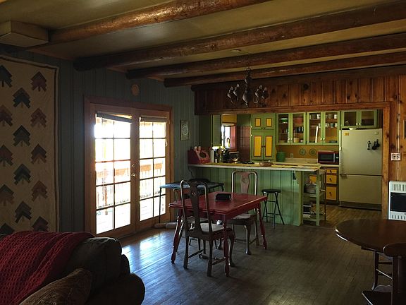 One of the original houses built above the railroad tracks, a short walk to the village or the OSHA trail, loaded with history and charm and carefully maintained. Incredible views of sunsets and the White Sands National Monument from the cabin windows and it’s new deck (added in 2019). Open floor plan in the living and dining area with french doors out to the deck. There are two bedrooms on the main level and a third on the lower level with a separate entrance and private bathroom along with it’s own screened off porch below the deck. There is also a small room with a beautiful stained glass window that could be a perfect study or extra guest. The lot has been beautifully landscaped and offers additional viewing pleasures.