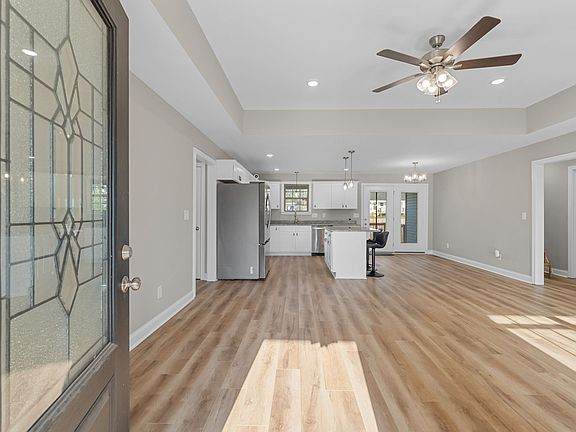Nearly New Construction Home with Fantastic 1 level Floor Plan. You'll love the Lighting Selections ~ Ceiling Fans in ALL Bedrooms. Spacious rooms with LVP Floors and Tile through out Home. Split bedrooms. Large Master Suite with Walk in Closet and Double Vanities with Large Tiled Shower. BIG Walk in Laundry Room Also a Flex Room from Garage for Work out area, Office Desk or Storage Space. Large Partially Covered Deck * Large Garage * LARGE Backyard. Take a look NOW because this one will not last~