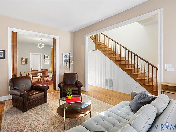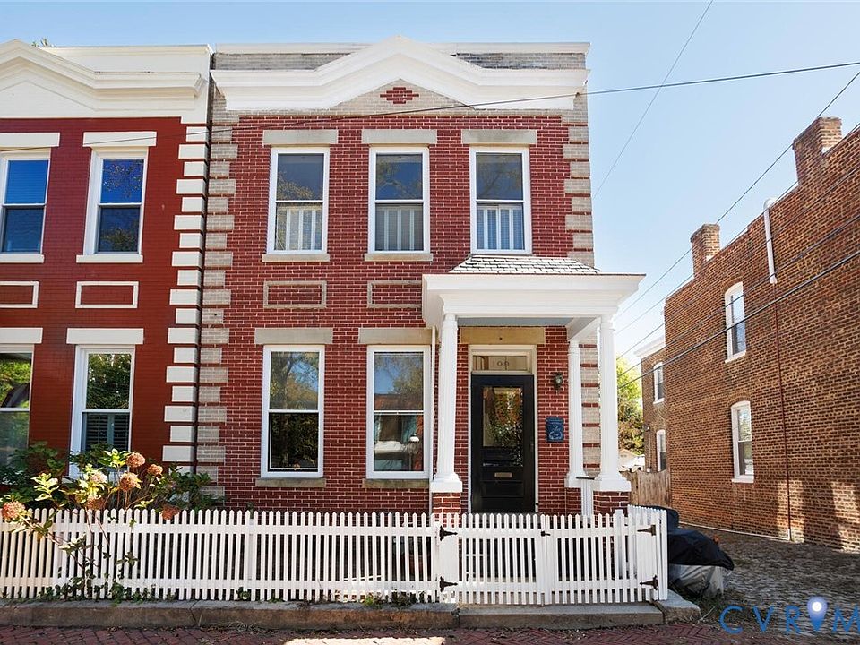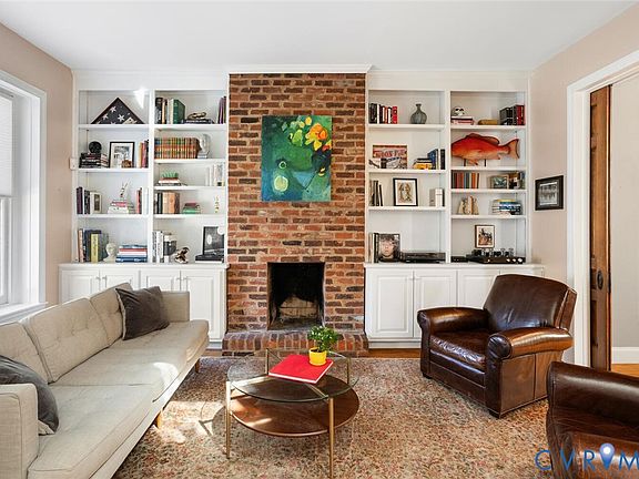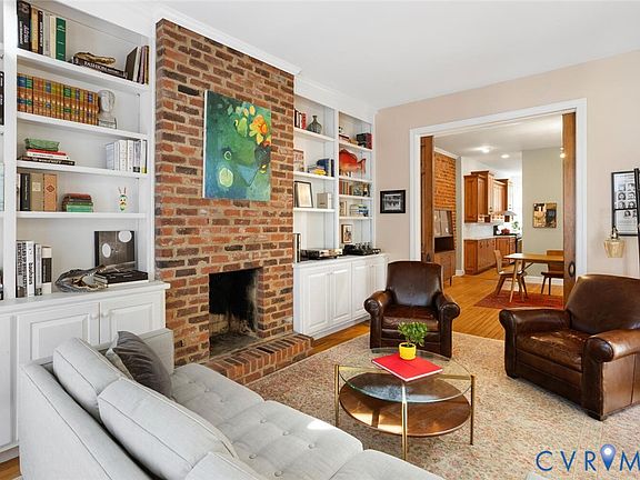 Located just steps from the iconic Libby Hill Park, this handsome historic home blends timeless character with thoughtful modern updates. The unique layout is full of charm, starting with a spacious living room featuring large windows, built-in shelving, and a brick fireplace. Original pocket doors lead to a large dining area with an exposed brick wall and a second brick mantle—perfect for entertaining. The updated eat-in kitchen offers warmth and functionality with wood cabinetry, stainless steel appliances, and a gas range. The bright stairwell with skylight leads you to a spacious primary bedroom with an alcove. A second bedroom, currently styled as a comfortable den, provides flexibility, while the third light-filled bedroom adds charm and functionality. The full bathroom includes a tub and a separate vanity area. The front bricked patio is a lovely outdoor spot. With Libby Hill Park right around the corner, your outdoor space expands into one of Richmond’s most beloved green spaces. This home is highly walkable to all that Church Hill has to offer: acclaimed restaurants, coffee shops, markets, and more. Convenient access to downtown and major interstates makes this location unbeatable. Historic charm meets modern convenience in this unmatched location.