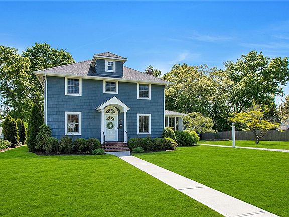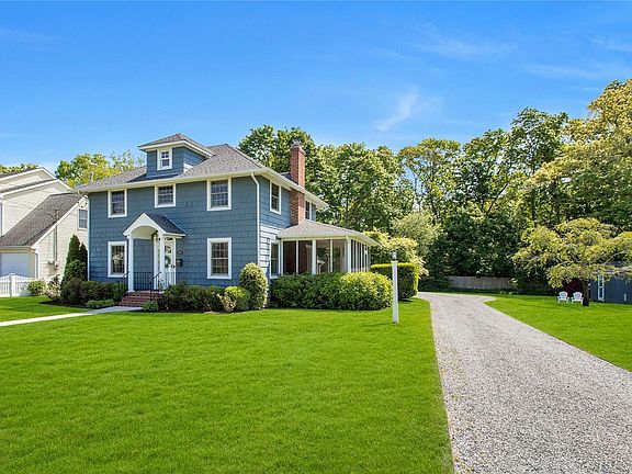 Classic 1930s Colonial in South Blue Point. Filled with charm complimented by modern amenities, you are sure to fall in love with this property! 3 bedrooms and 1.5 baths, many recent updates completed while keeping the original details of the home. Lovely entry foyer flows into living room with beautiful fireplace, large windows and adjacent screened in porch with french doors, Formal dining room and tastefully renovated kitchen and powder room complete the first floor. Upstairs you will find 3 bedrooms and full bath. Primary bedroom with custom closet, all hardwood floors throughout. Young architectural shingle roof and natural gas heating system, paver patio and professionally landscaped yard. Upgraded 200 amp electric, oversized detached 2 car garage and custom built shed. Perfect location, close to Blue Point preserve, Blue Point Dock and Bayport-BluePoint Library.