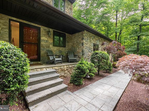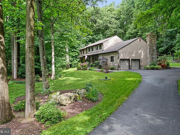 Welcome to 109 Norman Circle, a tranquil sanctuary nestled on nearly 4 acres of secluded wooded beauty. This home offers endless options for enjoying the outdoors, whether it's relaxing on the front porch in a rocking chair admiring the front yard garden beds,, unwinding on one of the two back decks, lounging in the screened-in porch, or gathering around the custom-built fire pit in the backyard. Inside, enter into the front foyer where the powder room, coat closet and access to the two car garage are located. The recently renovated kitchen opens into a grand two-story living room, where a magnificent stone fireplace stretches nearly two stories tall, creating a dramatic focal point. You will never run out of space with the walk-in pantry of this size. Adjacent to the kitchen, you'll find a formal dining room and a smaller living room, perfect for intimate gatherings. An expansive den/entertainment room, lined by built-in bookshelves leads to a sunroom, providing a cozy retreat on chilly winter days with its heated space and panoramic windows. The spaciousness continues on the second floor. Ascending the staircase, you'll discover the primary bedroom to the right, featuring a fully renovated bathroom brightened by a skylight. The primary suite also includes a loft overlooking the vaulted ceiling of the living room and a large walk-in closet accessed through the loft. For added convenience, a laundry room is located in the primary bedroom. However if your preference is to have a second walk-in closet in the primary bedroom, the laundry can easily be relocated to a large closet down the hall. On the opposite side of the staircase, you'll find three large bedrooms and a smaller room currently used as an office, and could also function as a fifth bedroom. The hall bathroom boasts dual sinks with a new stone countertop on the vanity. The large basement, while mostly unfinished, offers endless possibilities and includes a small finished office space.Experience the perfect blend of comfort, flexibility, and natural beauty in this exceptional home that has been mindfully updated and maintained.