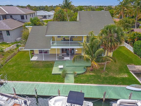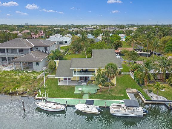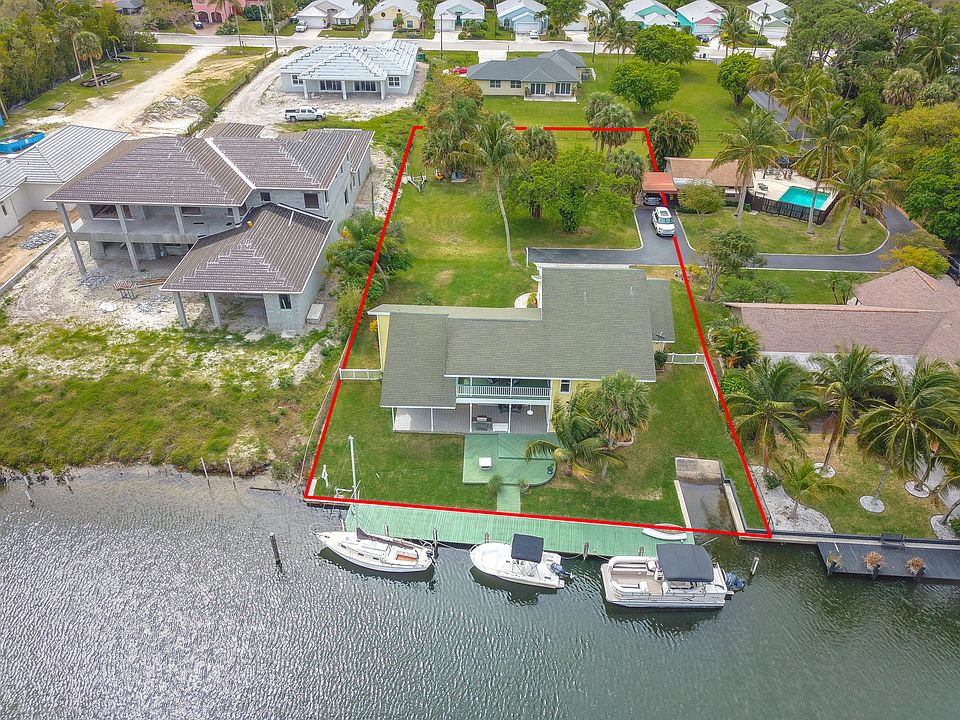 Spacious waterfront home close to Jupiter Inlet, comprised of 2 lots that total approx .57 of an acre. The second lot is a buildable lot 100X122. Lots will not be sold separately. The waterfront lot has 96 feet on a canal, dock of 74 feet. Comfortable ''one owner'' home in good condition. Large 800 Sq Ft 3 car garage with work room and generator hookup for partial home lighting. Attic storage 20X8 plus additional 16X4 area. Private driveway off Old Jupiter Beach Road (just north of Indiantown Road and ALT A1A) servicing only two residences. Huge 8X7 pantry, island kitchen, breakfast bar, Master suite on main level. Volume ceilings, bay window, upper and lower waterfront patios,utility room and large walk-in closets. Great In town location centered in the heart of everything.