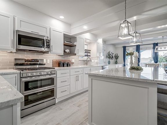 Updates galore!!! This stunningly remodeled home is centrally located and is ready for new homeowners to fill it with fabulous memories. Step inside the home, and you're greeted by an open-concept layout that's just perfect for hosting get-togethers. Fabulous updates throughout including full kitchen makeover that showcases sleek cabinets, granite countertops, newer appliances (refrigerator stays), elegant backsplash, oversized breakfast island, tons of storage within the cabinets and walk-in pantry. With 5 bedrooms, there's space for everyone. One of the bedroom is a second primary suite with a walk-in shower and it's perfect for guests or as a mother-in-law suite. The home is remodeled with all the latest trendy colors and top-notch finishes and features a separate office+3 living areas. Bathrooms have been revamped with modern touches and trendy designer tiles, providing a spa-like experience every day. The dining room boasts a wall of windows flooding the space with natural light, The cozy living room is perfect for enjoying cold winter nights by the fireplace. Relax while watching your favorite football team play on the TV in the man cave complete with a fireplace, bar seating, and built-in bar with beverage cooler. The outdoor space is just as impressive, featuring a newly remodeled saltwater pool—perfect for cooling off during hot summer days. You can watch the amazing Oklahoma sunsets from your backyard while roasting marshmallows by the firepit. New roof, new gutters, new exterior paint, new storage shed in the backyard and a new gazebo with a grill for the cooking enthusiasts. The 2-car oversized garage features built-in cabinets with a workbench and a storm shelter. To top it off, a 1-year home warranty is included, so you can move in with confidence. Location allows for quick access to major highways, shopping, dining, entertainment and Tinker Air Force Base. Home qualifies for OCHFA Turnkey FHA program with interest rate in the low 5s with no buydowns.