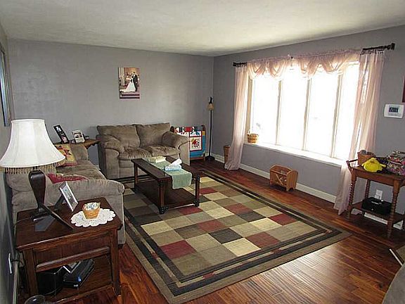 Spacious & pretty 4 BR, 2 BA brick ranch with partially finished basement! Interior features formal living room with hand scraped engineered hardwood floors, large eat in kitchen, massive family room with gas fireplace, rec room in basement with wet bar, newly tiled bathroom with whirlpool tub & double vanity, ample storage, hardwood floors in bedrooms, & new hot water heater! Exterior features traditional front porch, 1 car attached garage, concrete driveway, rear patio located adjacent to family room, storage shed, and more! SPECIFIC PERFORMANCE