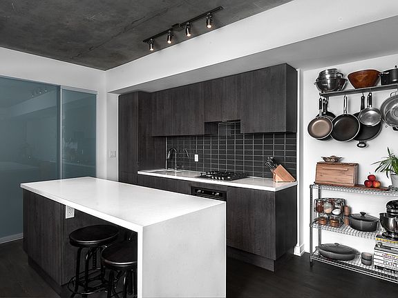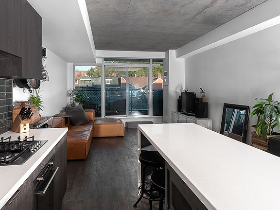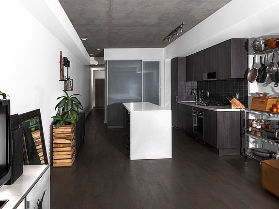 109OZ is located in the heart of Ossington's vibrant neighbourhood. Live in this beautiful and bright one bedroom plus den suite, with an east view overlooking the city and trees of Trinity Bellwoods. Sought after floor plan with no wasted space. This unit features exposed concrete ceilings, floor to ceiling windows, hardwood throughout, a premium high-end kitchen, en-suite laundry and a private balcony with BBQ connection. Storage unit included. Underground parking available for an additional $200 per month.