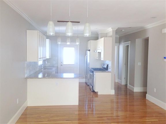 Gut renovated on the top two floors of an East Cambridge multifamily. High end finishes and all the bedrooms are good sized. The main floor has a large open kitchen-dining-living area and the kitchen has a built in peninsula that can seat four people easily. Dedicated storage in the basement. There is a nice shared outdoor patio with furniture. Pets are negotiable and it is very close to the Lechmere greenline and a little farther but still close to the Kendall Sq redline. (Reference #180118)