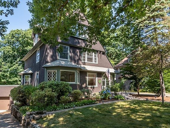 Charm & character abound in this 11 room, 4/5 bed Arts & Craft's style home built in 1900. Steps to Newton Centre this home is rich in period detail w/natural woodwork, bay windows, leaded glass, built-in's & high ceilings. The home offers a welcoming vestibule & mud room leading to a lovely foyer. The first floor is comprised of a study, living room w/bay window & fireplace, dining room with a leaded glass window, 1/2 bath, kitchen w/center island & sub-zero refrigerator, family room w/access to a deck & steps to a patio. Second floor offers a primary suite w/full bath & walk-in closet, two family bedrooms w/fireplaces & family bath w/laundry. The third floor is finished with a bedroom, office (or 5th bedroom) full bath & recreation room. The unfinished basement offers an additional 1900 sq ft of storage and utilities. Access to the two car garage with storage and exterior doorway completes the home. Close proximity to Weeks Field, schools, major routes, the 'T', shopping & eateries.