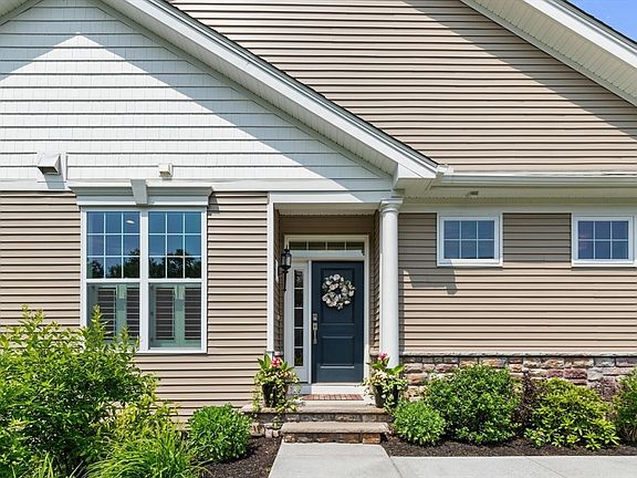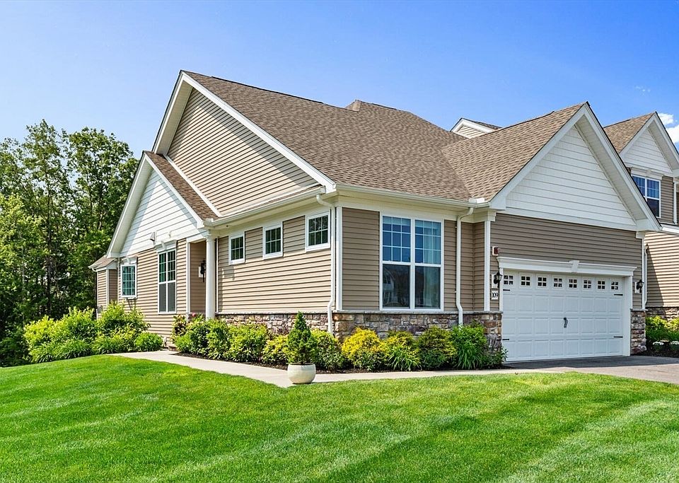 Bethel unit in the Preserve at Emerald Pines. The sought after Bethel floor plan has 1,627 SF of modern, elegant 1st floor living space. Premier Toll Brothers 55+ community offers luxury living with exceptional amenities including a clubhouse, gym, outdoor heated pool, bocce & pickleball courts. Elegant side entry with colonnade opens to gorgeous formal dining room accented by columns & two piece crown molding. Gourmet chefs kitchen features large center multi seat granite island with upgraded SS appliances, gas cooktop, farmers sink, recessed lighting & pantry. The wide open feel is enhanced by a dramatic full length cathedral ceiling. Sun splashed with natural light the living room features gas fireplace, slider out to two tiered exterior space including deck & patio overlooking a plush wooded backdrop. The primary suite features a tray ceiling, lavish bath, dual granite vanity, walk in shower & custom closet. Easy expansion possibilities in the walk out LL. Attached 2 car garage.
