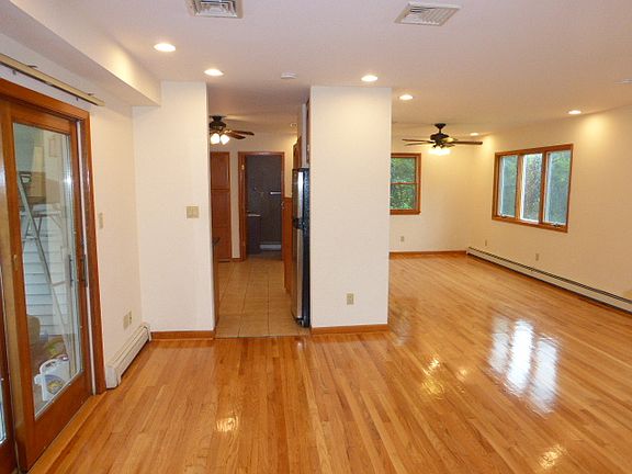 3 bed, 2.5 bath. The bright first floor has a powder room, recessed lighting, oversize windows & gleaming wood floors throughout. The updated kitchen has tile flooring, stainless & black appliances including a dishwasher, granite counters & custom tile backsplash. It flows to the formal dining room which is open to the living room. The living room has a gas fireplace, walk-in storage closet, & sliders to the backyard. The deck overlooks a large patio and sprawling landlord maintained yard. The primary bedroom has 2 custom closets & private full bath. A large family room and laundry hookups are in the finished basement. Central A/C & gas hot water baseboard heating throughout. Parking for 4 in the 2 car wide driveway. An NTN background check is required, no pets accepted.