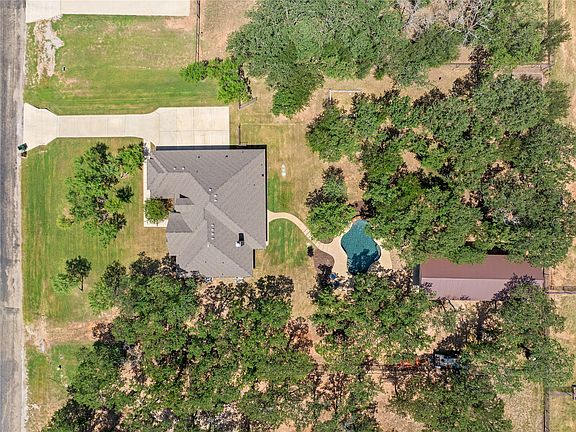 This stunning residence offers an inviting open-concept layout with a desirable split-bedroom design. Natural light fills the living spaces, highlighting beautiful designs throughout, including a cozy wood-burning fireplace. The private master suite is a true retreat, featuring a spacious en-suite bath with a soaking tub, and generous his-and-hers walk-in closets. Step outside to your own peaceful escape, situated on a heavily treed one-acre lot. This property offers privacy, serenity and countless opportunities for outdoor living. Spend the warm Texas afternoons lounging in the pool, then unwind on the covered patio while taking in the breathtaking sunsets. The enclosed 20x40 shop with attached 20x20 covered patio adds valuable storage and versatility to this already exceptional property. All of this just minutes from acclaimed Brock schools and easy access to I-20 for a quick commute.