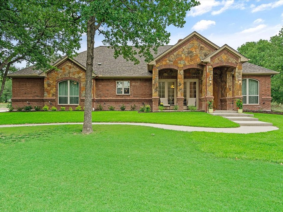 The home you’ve been dreaming of is waiting for you in this brick and stone charmer, bursting with curb appeal from the moment you arrive! Natural light fills the home with warmth and highlights the 10-ft. ceilings and crown molding. You will love hosting friends and family in the beautiful open concept space. An effortless flow guides you from the formal living or dining space to the main living room that opens to a gourmet kitchen. The home chef will adore this space with luxe granite countertops, plenty of custom cabinetry and top-of-the-line appliances. The first two bedrooms share Jack-and-Jill bathroom with their own private sinks, and the owner’s suite is the perfect place to relax with a spa-like ensuite. Through the French doors you will find the office with built-in desk and shelves. Features include; new roof 2020, sod, landscaping & sprinklers 2023, RV Parking with hook-ups, central vac, 2 tankless water heaters, tilt-in windows for easy cleaning, plus so much more to see!