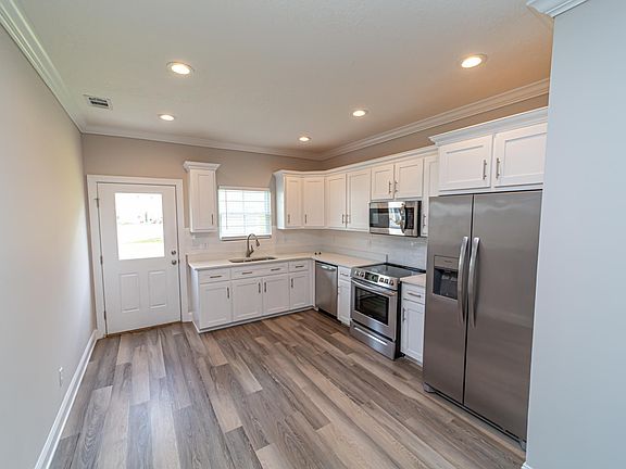 This impressive two-story residence features elegant wide plank LVP floors and tile throughout, creating a stylish and functional living space. The kitchen is equipped with stainless steel appliances, and ceiling fans are included in the living room as well as all three bedrooms, ensuring comfort year-round.
