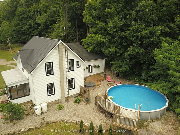Adventure, farming, hunting, homesteading, nature and tranquility await you at 109 Quabbin Rd. Boasting 77+ acres with 2000ft of shoreline on Joness Creek, reseeded pasture, electric fencing for livestock, fenced front yard, barn, chicken coop, garage (with second level workshop), raised garden beds and authentic wood burning sugar shack, this property has it all! Inside, the beautifully updated 4 bed, 2 bath century home features a spacious eat-in kitchen with stainless steel appliances, a formal dining room, living and rec rooms, main floor laundry, and a convenient mudroom. Embrace the outdoors from the comfort of the homes screened sunroom or retreat to the private backyard oasis complete with pool, hot tub, and fire pit. Enjoy hassle free country living with high speed fiber internet, new windows (June 2025), luxury vinyl flooring and new septic (Aug 2025). The meticulous home upgrades add a modern finish while respecting original features of the century home. The property is home to abundant wildlife including deer, turkey, grouse, ducks and more; all of which can be easily observed from the roughly 2kms of private trails. For the forager, find abundant wild leek, fiddleheads, and wild blackberrys; for the adventurer, enjoy kayaking to the St. Lawrence River from your very own shoreline of Jones creek, a tributary known for its immense biodiversity and part of the UNESCO Frontenac Arch Biosphere. With easy 401 access (5 min), and commuting distance to Brockville (20min), Kingston (45min) and Ottawa (1hr 15min) There is so much more detail to this home, with endless potential and rich Canadian heritage, this unique homestead is a rare find!