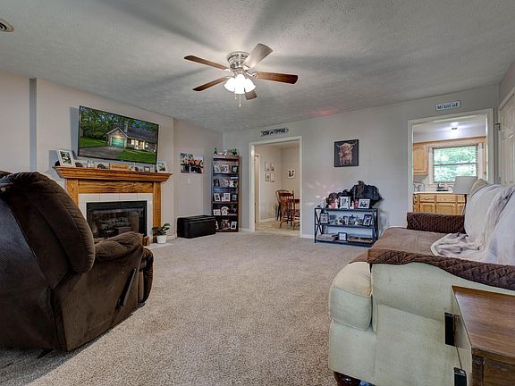Cozy fireplaceOpen layoutNatural lightSoft neutral tonesFenced backyard