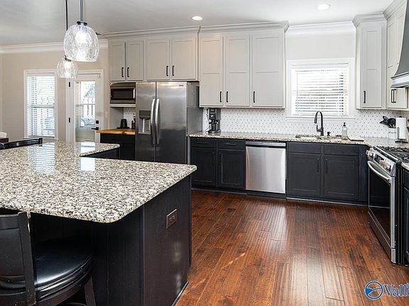 Spacious 4BR home in Madison County near Redstone Arsenal & Town Madison. Open living with coffered ceilings, rich birch hardwoods, crown molding & gas fireplace. Gourmet kitchen with granite, marble backsplash, gas range, SS appliances incl. fridge, pantry & new dishwasher under cupboard outlets, study/4th BR with new Murphy bed. Upstairs primary retreat features vaulted ceilings, sun-filled windows, spa bath with garden tub, dual vanities & huge walk-in. Two additional vaulted BRs with walk-ins. Ceiling fans throughout. Covered patio extends the living space. Elegant details throughout—designed for both comfort & sophistication.