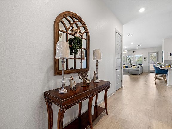 Welcome to 109 Rapid Rambling in Georgetown’s master-planned Riverview community. Built in 2023, this almost never-lived-in home feels brand new and showcases over $40,000 in thoughtful upgrades. Featuring 4 spacious bedrooms, 2 full baths, and an open-concept layout, this home was designed with both comfort and functionality in mind. The kitchen offers modern finishes, while the living areas flow seamlessly for effortless entertaining. Retreat to a private primary suite complete with two walk-in closet enhanced by built-in shelving. Outside, enjoy a massive lot with greenbelt views and Hill Country views from the porch, plus a covered patio, epoxy-coated surfaces, and pre-installed conduit wiring for a future shed. Additional upgrades include a whole-home generator, water softener, fresh interior paint, and upgraded glass doors. This move-in-ready gem combines style, practicality, and peace of mind all in a prime Georgetown location.