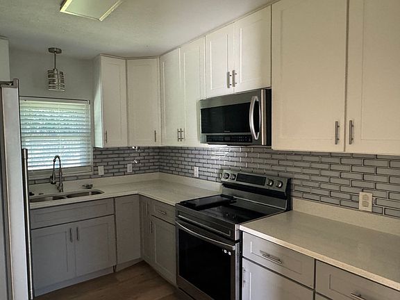 Welcome to this fully renovated 4 bedroom, 2 bathroom home conveniently located near NAS Pensacola and the Naval Hospital in Pensacola, FL. This charming house features a privacy fenced back yard, perfect for enjoying the Florida sunshine in peace. The interior boasts luxury vinyl plank flooring, ceiling fans throughout, and a split bedroom floor plan for added privacy. The kitchen is a chef's dream with quartz countertops, all stainless steel appliances, and no carpet in sight. With reduced electric bills thanks to solar panels, you can enjoy modern amenities while saving money. The bathrooms are beautifully remodeled with quartz vanity tops, adding a touch of luxury to your daily routine. Just minutes from Downtown Pensacola, this home offers the perfect blend of convenience and comfort. Don't miss out on the opportunity to make this house your new home!