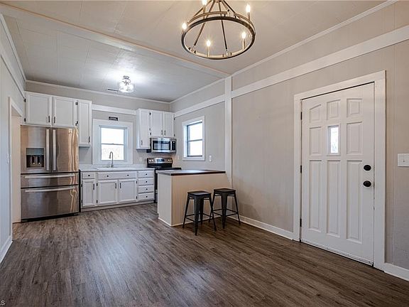 Charming 1920s refurbished cottage in Elkin, featuring modern updates and conveniences. Situated on a nice-sized level to rolling lot, this home features two bedrooms, one bathroom, newer appliances, and a bonus flex room perfect for a study, office, or guest room. Conveniently located in the Elkin School District, this cottage is close to trails, mountain biking, public parks, recreation center, and historic downtown Elkin. Personal property to convey includes the TV in the back bedroom, two bar stools, refrigerator, and washer/dryer. The front gutter appears to have a small leak dripping onto the front deck entrance. We have a roofing company looking to repair the gutter. The majority of the photos were taken in 2023 prior to a renter moving in over the last 2+ years. This property is also for rent at $1,225 per month.