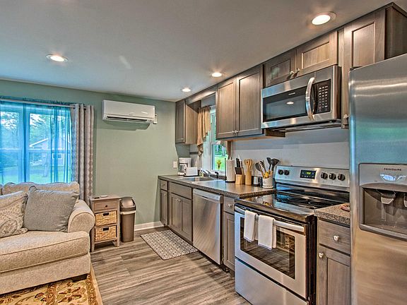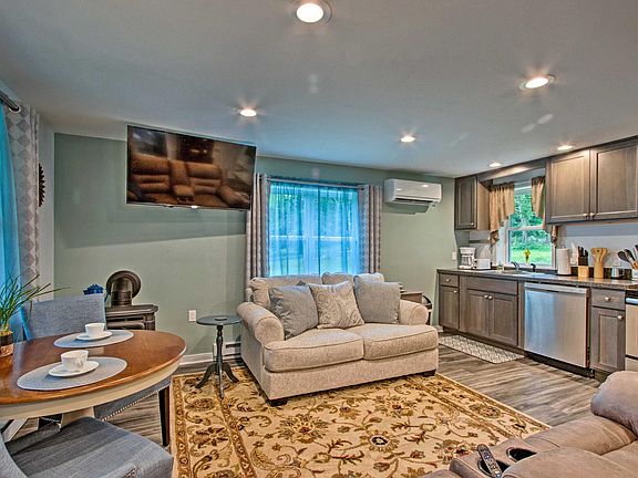 New, fully furnished, beautiful decor. Utilities & Wi-Fi included. Fully equipped kitchen including microwave, stove, dishwasher, refrigerator, small appliances, cookware, utensils, washer, dryer. Free parking for two spaces. Heating/cooling split system. Trash removal included. Wall-mounted smart TV in living room and bedroom. Small ornate gas heating stove in corner of living room. BACK porch with gas firepit & gas grill Close (five minutes) to Rt.33, shopping, drugstores and conveniences. Located on 50 acres, ponds, stream and forest setting. Very peaceful. Ducks, deer, bald eagles, abundant wildlife, serene small resort setting. Bass fishing allowed in ponds only. Hiking trails on property. Canoe, paddle boat and kayak available. No smoking inside premises. Tenant is responsible for outside porch to be kept neat and tidy. Quarterly walk thru inspection for basic cleaning and orderly living required. Snow plowing is included, however, tenant must shovel around their vehicle and move for the snowplow to maneuver. A housekeeper for periodic cleaning is required, to be negotiated with landlord at time of lease signing. No smoking inside premises. Tenant is responsible for outside porch to be kept neat and tidy. Quarterly walk thru inspection for basic cleaning and orderly living required. Snow plowing is included, however, tenant must shovel around their vehicle and move for the snowplow to maneuver. A housekeeper for periodic cleaning is required, to be negotiated with landlord at time of lease signing.