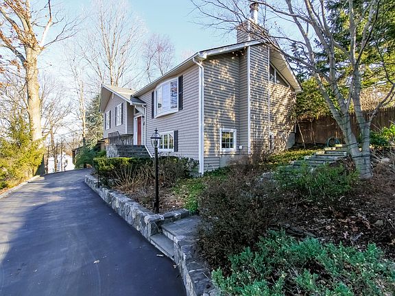 The one you've been waiting for, this super stylish high ranch is move-in ready. Curb appeal galore with new vinyl siding and stone front, stone walls, blue stone paths and stairs, new windows and shutters, professional landscaping and automatic outdoor lighting. Main floor boasts stunning custom kitchen with miles of granite counters, double wall ovens, electric cooktop, paneled hood, paneled SubZero refrigerator, paneled dishwasher, pendant lights, peninsula, pantry and sliders to your Trex deck with built-in pool! Stunning yard with perennials and rock garden. Formal LR w/vaulted ceiling, DR, MBR suite w/double custom closets, custom WIC and gorgeous master bath, glass shower, dbl vanity. 2 BRS, updated hall bath. Lower level family rm w/wood-burning fireplace, office, laundry room, powder room. 2 car attached garage. Convenient location with easy access to town, shops, schools, parkways and MetroNorth train.
