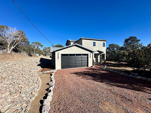 Experience serene mountain living in this stunning new build just 10 miles / 14 minutes from Albuquerque! Surrounded by gorgeous mountain views, this home boasts 9' ceilings and large picture windows throughout. The open floor plan downstairs is perfect for entertaining and enjoying the views, and the kitchen features granite countertops and soft close cabinets. This all-electric home includes high-efficiency windows, heating & cooling. The oversized garage provides ample space for larger vehicles and storage. Enjoy the front and back covered patios, finished with elegant tongue & groove wood. It is situated on a generous 0.89-acre lot along with 0.2 acres directly across Rincon Loop Road.