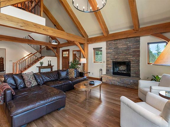 AMAZING OPPORTUNITY to own a true showcase 4-bedroom, 3-bathroom timber frame home in one of Durango’s most desirable subdivisions! Nestled on a private 1-acre lot that backs to open space with direct access to hiking trails and wilderness areas, this home feels like a secluded retreat—yet it's right in town. Built with exceptional craftsmanship and quality materials, soaring ceilings, and exposed solid red oak beams. Inside, enjoy two dedicated office/flex spaces, ideal for remote work, creative studio, or gym. The gourmet kitchen includes granite countertops, stainless steel appliances, custom cherry cabinetry, pantry, and cherry hardwood floors throughout. All bathrooms showcase custom finishes. Additional highlights include solid alder doors, a wrap-around deck, beautiful patio landscaping, skylights, and stunning mountain views. A rare find that combines elegance, flexibility, privacy, and location!
