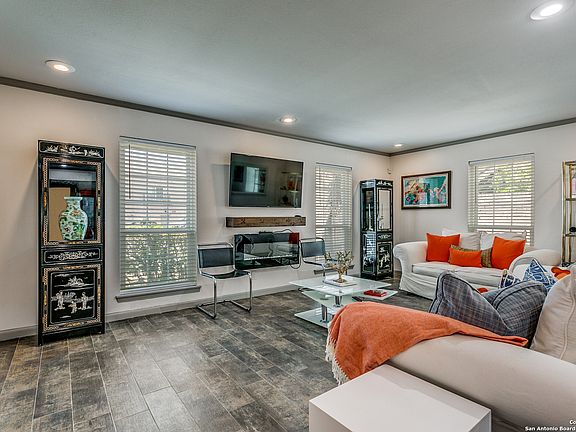 This beautifully updated first-floor two-bedroom, one-bathroom condo is conveniently located in Alamo Heights. It offers a perfect blend of style and convenience with recessed lighting, an open-concept layout, and wood-look tile flooring throughout. The updated kitchen features custom cabinets, stainless steel appliances, and a bar nook with a wine refrigerator, while the updated bathroom adds a touch of modern comfort. Generous closets and additional storage provide ample space, and covered parking ensures convenience. With low HOA fees, this move-in ready condo is ideal for those seeking a low-maintenance lifestyle with thoughtful upgrades.