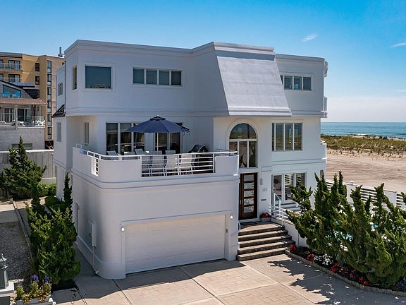 Longport Oceanfront Corner Property! A rare opportunity to own 70' of beach frontage in Longport, “The Best Port.” This oceanfront classic features 3 floors of dynamic views from multiple vantage points. 5 en- suite bedrooms, 2 powder rooms, 2 laundry rooms, 2 gas fireplaces, elevator and 2 car attached garage with Tesla charger and parking for 6 cars. Exciting new features include all new Andersen windows, and pool decking. The first level presents a grand marble foyer, 3 en- suite bedrooms, an interior pool bath with access from deck, plus a powder room and wet bar. French sliding doors open to a large in-ground pool with expansive decking; perfect for entertaining. Relax or dine on any of the spacious decks while enjoying ocean breezes and sounds of the surf. The second level boasts an amazing living room overlooking the ocean, gas fireplace, dining room & all new custom kitchen with quartzite countertops and all new appliances including a Miele built in steamer coffee maker. The third floor master suite is situated on 70' of unobstructed oceanfront and is accessible by elevator. It includes a separate sitting room / home office, gas fireplace, walk in closet and an amazing bathroom with Sauna. Enjoy sunrises and endless views from this Longport, New Jersey shore retreat!