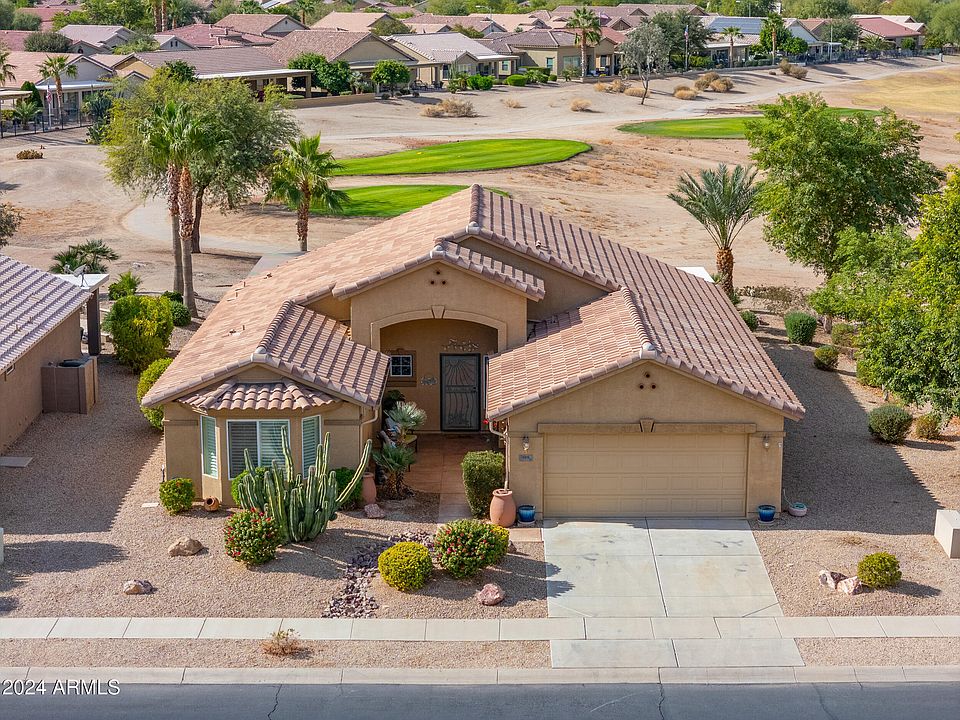 Extended covered patioResort-style livingBuilt-in wine rackLow-maintenance artificial turfReverse osmosis systemSweeping golf course viewsWest-facing backyard