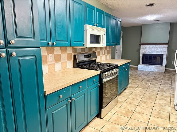 Updated bathroomHardwood floorsCozy fireplacePlenty of natural lightBold kitchen cabinetry