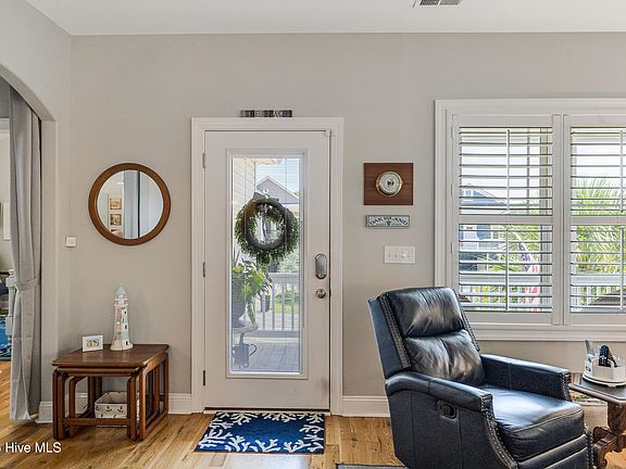Coastal Gem Just Steps from the beach in Oak Island-The Sweestest Little Seaside Town! Discover your Dream Retreat in this meticulousy crafted home, blending coastal charm and modern elegance in the Heart of Oak Island. Nestled in a Serene Location. Ideal Primary Residence or a Luxurious Second Getaway. Interior Highlights boast an Inviting Family Room with Gleaming Cherry Inlay Hardwood Floors, sophisticated Coffered Ceilings, and a sleek Wall-Mounted Electric Fireplace creates a warm, stylish ambiance. Gourmet Kitchen features sparkling Quartz Countertops, premium GE stainless steel appliances, a chic coffee bar, and an extended pantry with pull-out Shelving for ample storage. Luxurious Primary Suite offers Rich Cherry hardwood floors, elegant coffered veilings, a spacious walk-in closet, and a spa Inspired bathroom with a double vanity and a beautifully tiled walk-in shower. Outdoor Oasis offers Charming and Covered Rocking Chair Front Porch, Breezy Screened Side Porch and A Back Deck complete with a Marine Lift. Host