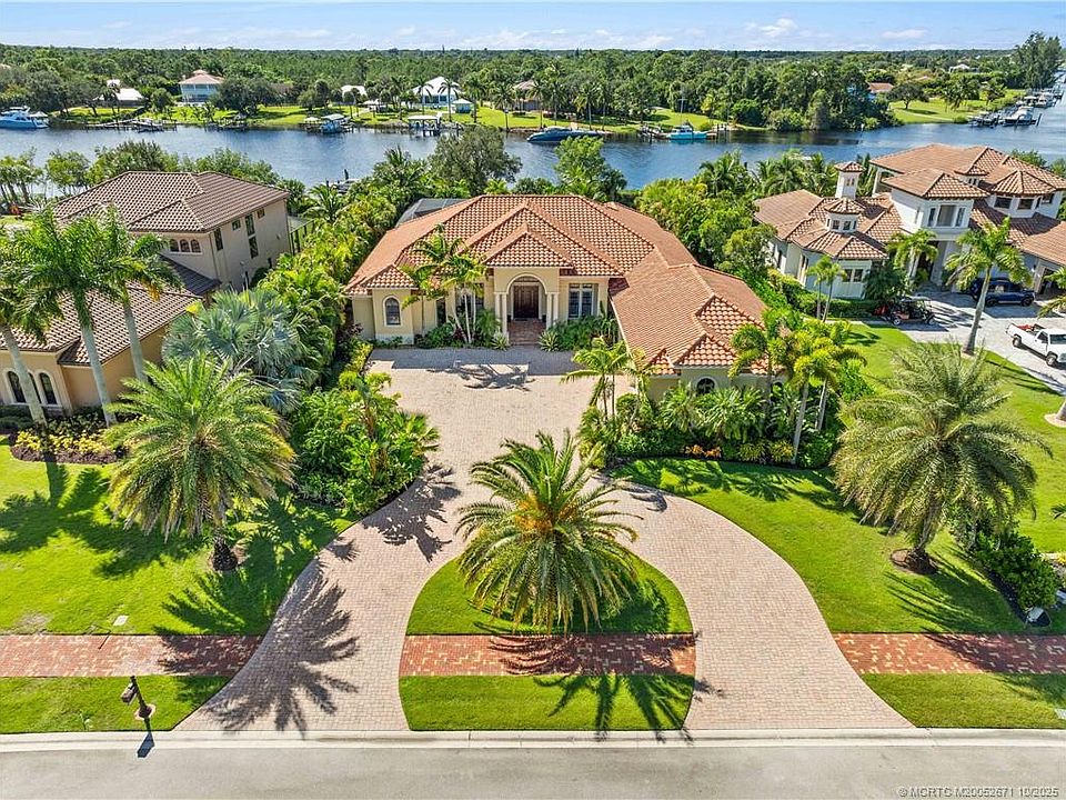Boater’s Parаdіѕe! Deeр-wаter, ocean acсeѕs, 16k lb boat lift and no fixed bridges from this elevated South Florida riverfront home. Featuring 3 spacious bedrooms, plus a den and larger office, this open-concept residence offers high ceilings, warm wood floors, and plantation shutters throughout. The expansive kitchen/great room flows seamlessly to the pool and tropical backyard, surrounded by mature landscaping for privacy and beauty. The 4 car garage formally had lifts for the owners car collection and easily converted back if desired. Close to town, minutes to fine dining all inside the Gated community known as the “Island of Ravello”.