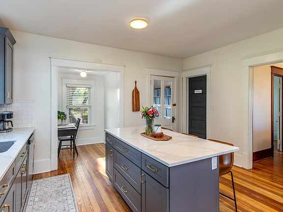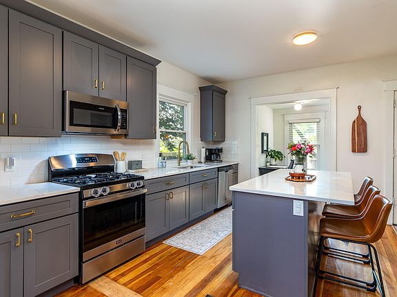 Inside, you'll find a bright and welcoming interior featuring refinished hardwood floors that flow throughout much of the main level, adding warmth and timeless style. The open kitchen layout is perfect for both everyday living and entertaining, with generous counter space, updated cabinetry, and a seamless connection to the dining and living areas.