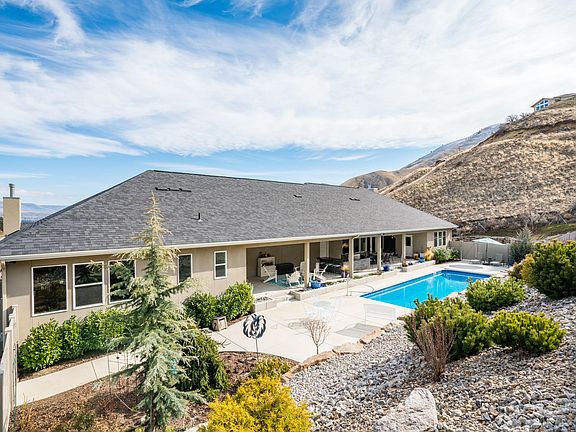 Gorgeous views of city & countryside, surrounded by nature reserve, Land Trust property. Newer one floor home, high quality finishes, additional kitchen & liviing area which is joined in backyard pool & covered patio bar b que, kitchen & bar...great fun! 3 car garage plus additional shop, office, half bath, currently used as kennel. 1.1 Acre of property (currently being short platted & recorded), move in ready!