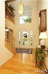 This updated exquisite home exudes pride of ownership. You will be greeted by gorgeous curb appeal and crisp landscaping which includes a sprinkler system and is located on a family friendly cul-de-sac,. Once inside the updates are endless including newer hardwood floors and carpet on the main level custom window treatments, custom crown molding; newer fixtures throughout and an updated spacious kitchen complete with a large built in desk and island which leads to a spacious deck and lovely back yard. Upstairs you will find a large master suite including dual vanities, separate soaking tub and shower. The spacious finished walk-out LL has a large rec room, sleeping room and abundant storage space.This neighborhood offers a subdivision pool, trails and a tranquil lake; is located in the award winning Rockwood School District.