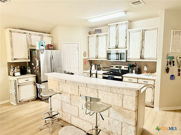 This beautifully maintained home offers thoughtful upgrades throughout, making it move-in ready and perfect for comfortable living. The homeowner has added a personal touch by custom-painting the kitchen cabinets, creating a warm and welcoming atmosphere. The kitchen also features updated countertops and is open to the living room—ideal for entertaining or spending time with family while cooking.