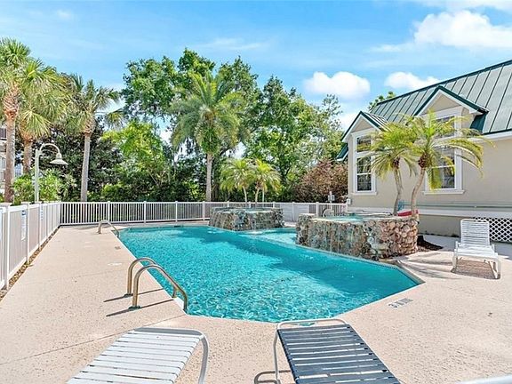 Shadow Brooke Village residents enjoy a resort-style pool with spa water features, beautifully maintained grounds, and a dedicated ground-level garage ideal for a vehicle, bikes, beach gear, or golf carts.