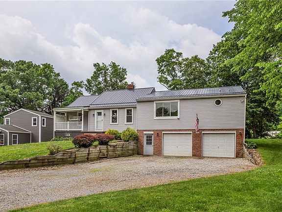 Welcome home to this 3-bedroom ranch, ideally situated on a spacious acre lot in Economy, just minutes from I-79 and Route 65. Step inside to a welcoming living room featuring a fireplace and newly installed LVP flooring. This steps up into a vaulted family room, boasting a gas fireplace, dual ceiling fans, and abundant natural light overlooking the front yard. The kitchen comes appointed with a stainless steel gas range and refrigerator. A slider from the dining room opens to a huge back deck, perfect for entertaining while enjoying views of the level backyard. The primary bedroom offers a walk-in closet and a newly renovated full bath, complete with a double vanity and a sleek tile and glass shower. Two additional bedrooms and a convenient half bath complete the main floor. Downstairs, a finished basement game room provides extra living space, alongside another full bath and an oversized two-car garage.